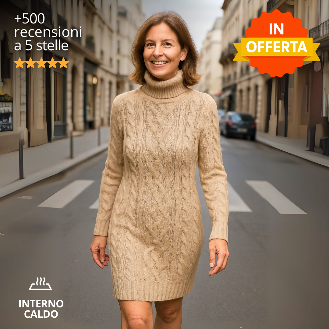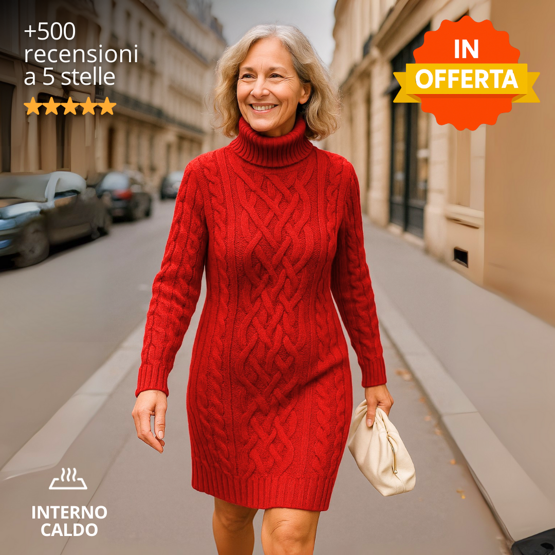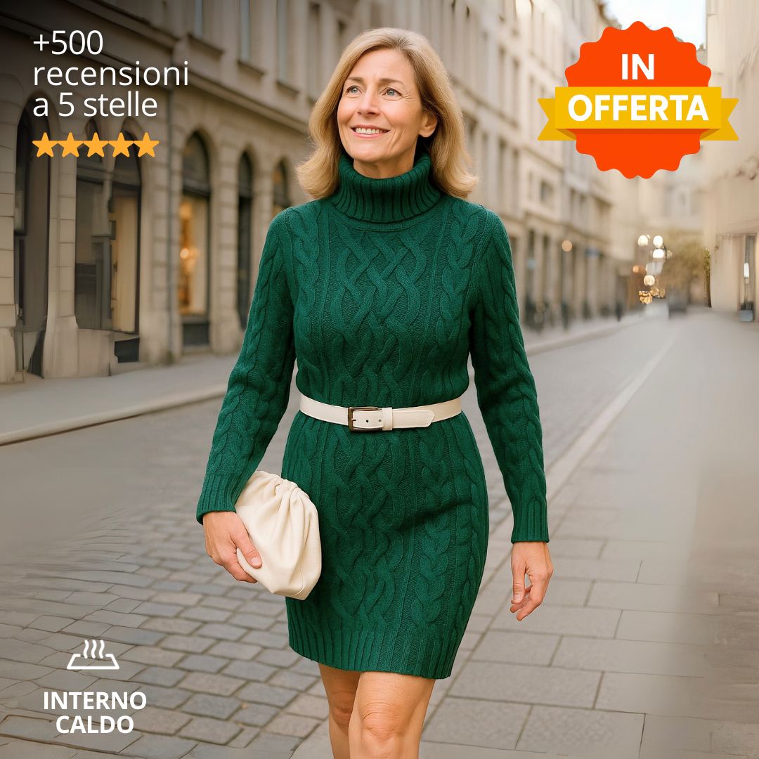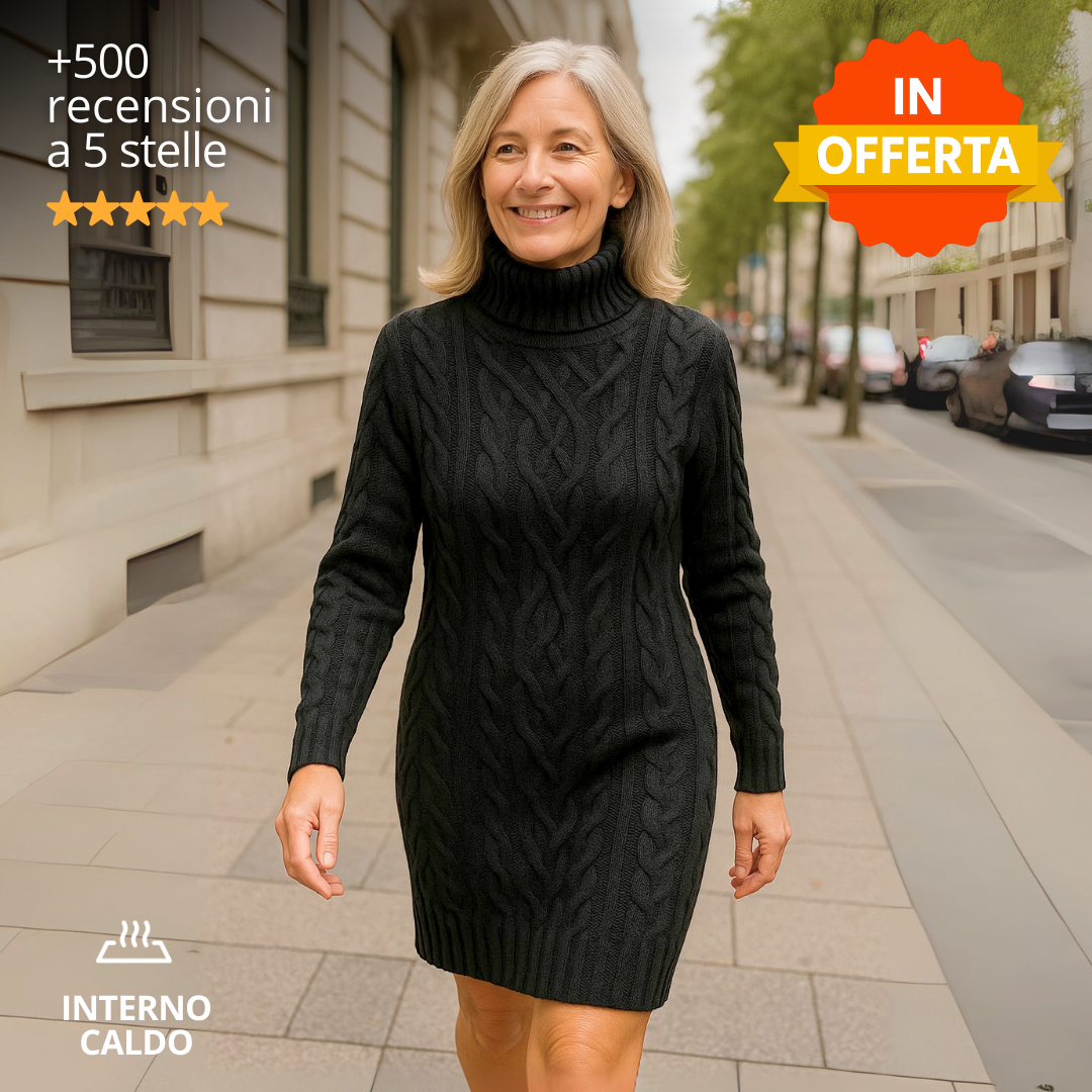 Vestito in maglia a collo alto: morbido ed elasticizzato.